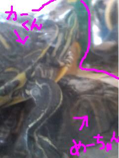 下にいるのが、♀のめーちゃんw。上にいるのが♂のかーくん。