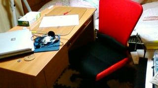 でも、ついこの間買った黒い机(アマゾンより購入)と、記憶も新しいピンクの座椅子・・・