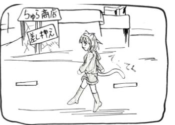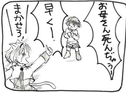 絵の下手さ、説明文などがないと分からない四コマもどき。