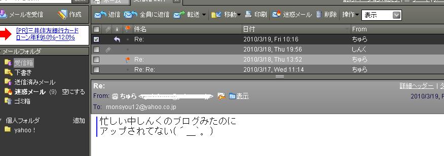そんな時、やふーめーるに【新着メール】が一件。
